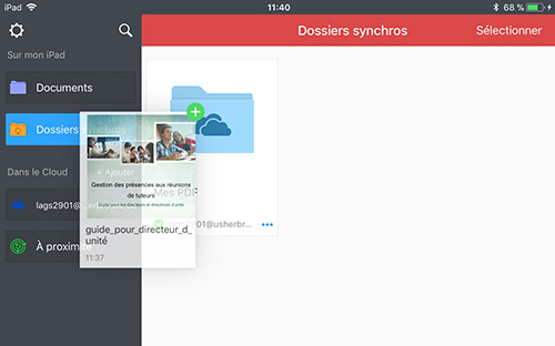 Ensuite, sélectionnez le document PDF (maintenir appuyé dessus) et le glisser dans votre dossier OneDrive précédemment créé.