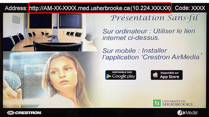 Ouvrez une fenêtre de navigateur et tapez l’adresse figurant à l’écran (http://am-xx-xxxx.med.usherbrooke.ca ou 10.224.XXX.XX) ![]()