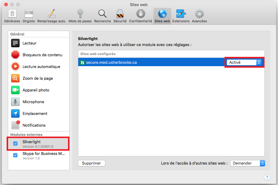 Assurez-vous que "secure.med.usherbrooke.ca" soit activé.