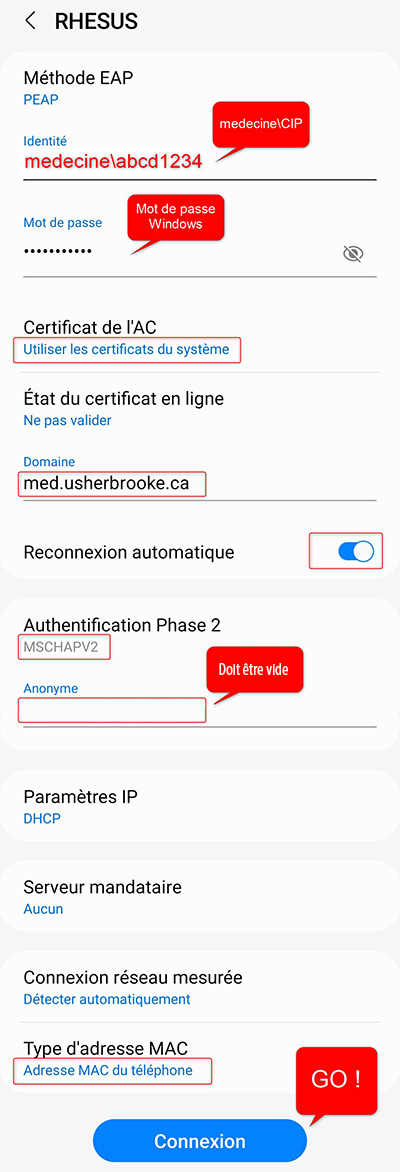 Compléter les paramètres en suivant l'example sur l'image ci-bas.