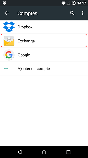 Sélectionnez Exchange (l'appellation peut différer selon la version d'Android). ![]()