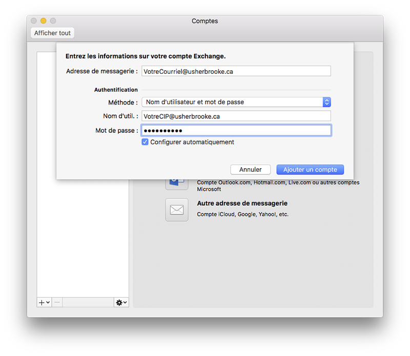 Cochez Configurer automatiquement et cliquez Ajouter un compte.