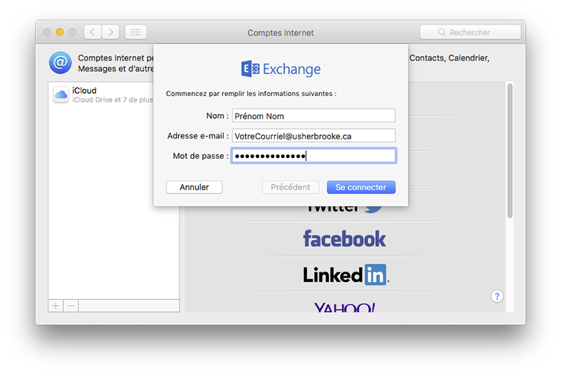MacOS : Mail: Configuration du nouveau compte courriel