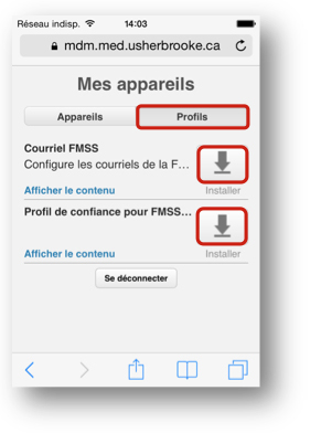 Dans Profils Cliquez sur le bouton Installer dans la partie Profil de confiance pour FMSS Cliquez ensuite sur le bouton Installer dans la partie Courriel FMSS Lorsque le système vous le demandera, entrez votre mot de passe de vos courriels. Vous retrouverez à présent dans Mail vos courriels. ![]()