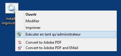 Copier le fichier Installer ImpInvite.bat sur le bureau. Faites un clic-droit sur le celui-ci et choisir Exécuter en tant qu’administrateur. Si l’ordinateur est en Windows XP, simplement double-cliquez le fichier. ![]()