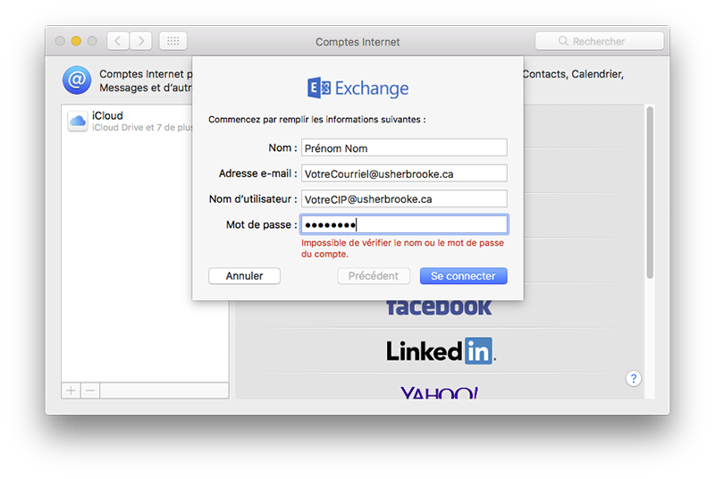 MacOS : Mail: Configuration du nouveau compte courriel
