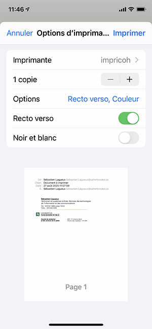 Vous pouvez ensuite définir le nombre de copie, l'option Recto verso et Couleur ou noir et blanc.Cliquez sur Imprimer