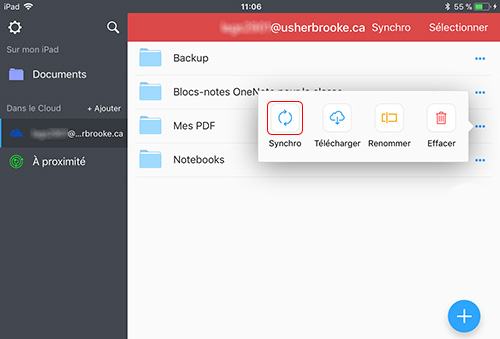 Touchez les ... à droite du répertoire à synchroniser puis cliquez Synchro.