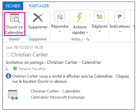 Cette personne reçoit la proposition de partage dans un courrier électronique, puis clique sur Ouvrir ce calendrier.