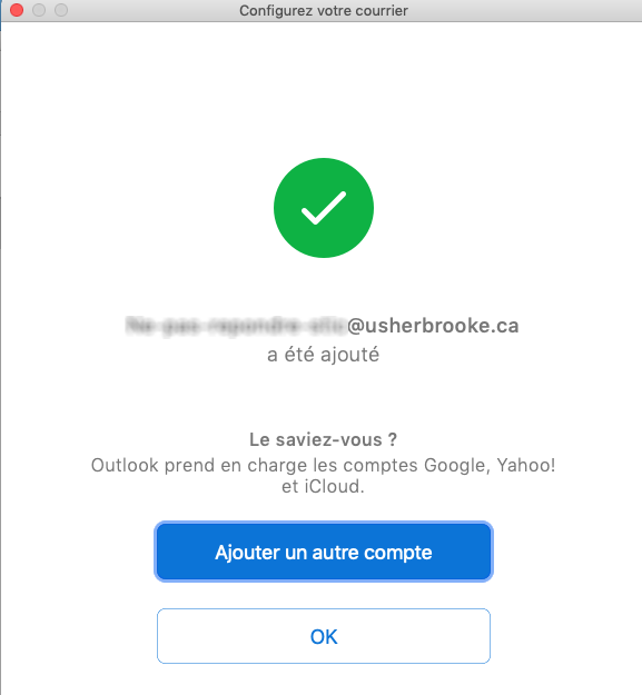 Une fenêtre apparaît indiquant que l'adresse a été ajoutée, cliquer sur OK.