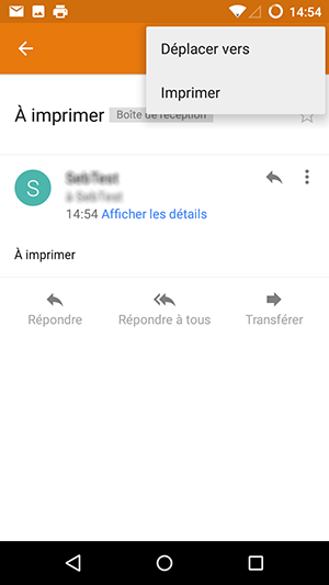 Sélectionnez l'élément à imprimer; dans notre cas un courriel.