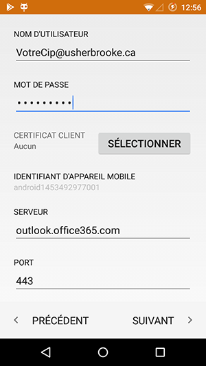 Nom d'utilisateur: VotreCip@usherbrooke.ca