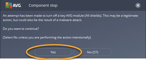 Le curseur devient rouge (Désactivé), et tous les composants AVG Antivirus sont désactivés. La protection AVG Antivirus se réactivera automatiquement la prochaine fois que vous redémarrerez votre ordinateur. ![]()