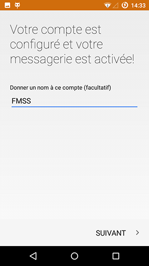 Nommez votre compte et cliquez Suivant. Cette étape est facultative et vous permet d’identifier facilement votre compte.