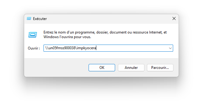 Inscrire: \\un05fmss900038.med.usherbrooke.ca\impKyocera et faire OK