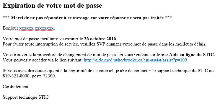 Ce message électronique vous sera envoyé 10 jours avant l'expiration. Nous vous recommandons d'effectuer le changement dès sa reception.